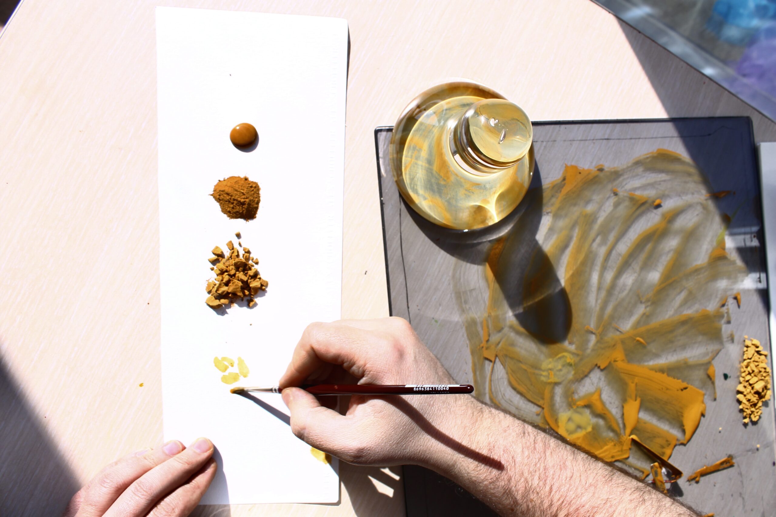 Taştan elde ettiğimiz pigmentlerle ve doğal bağlayıcılarla elde ürettiğimiz kartelamızın deneme seti sizlerle.